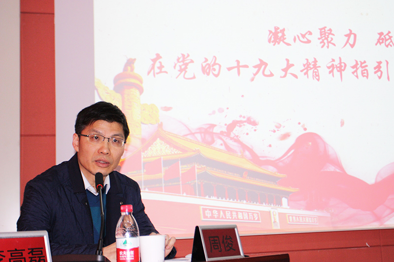 周俊同志主要從六個方面對黨的十九大精神進行全面深刻解讀:一是要深入理解把握黨的十九大68字主題和主要成果;二是要深刻領會習近平新時代中國特色社會主義思想;三是要深刻理解決勝全面建成小康社會和實現(xiàn)社會主義現(xiàn)代化的戰(zhàn)略部署;四是要全面貫徹落實國企黨建新要求;五是要把握時代發(fā)展新機遇;六是要勇?lián)鷩蟾母锇l(fā)展新使命。黨課內(nèi)容豐富、旗幟鮮明、思想深刻。