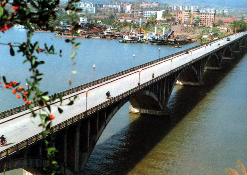 黃柏河大橋是長江葛洲壩水利樞紐的配套項目。全長476.95米,7孔跨徑60米鋼筋混凝土肋型拱,1981年建成,獲得國家和省優(yōu)質工程獎。