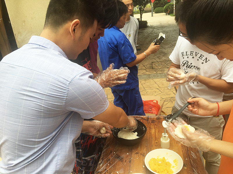 品嘗月餅也是中秋節(jié)的習(xí)俗之一,如果能品嘗自己親手制作的月餅,這個中秋節(jié)肯定更加難忘?;顒拥诙椌褪侵谱鞅ぴ嘛?,大家一邊自己動手和冰皮、包餡、壓花定型,一邊相互交流著關(guān)于中秋和月餅的故事。看似簡單的制作過程,要做出漂亮的月餅也讓大家費了不少心思。有些止不住饞的小伙伴,還沒等做完就迫不及待的嘗鮮了,也有些舍不得吃的,說要帶回家與家人分享。