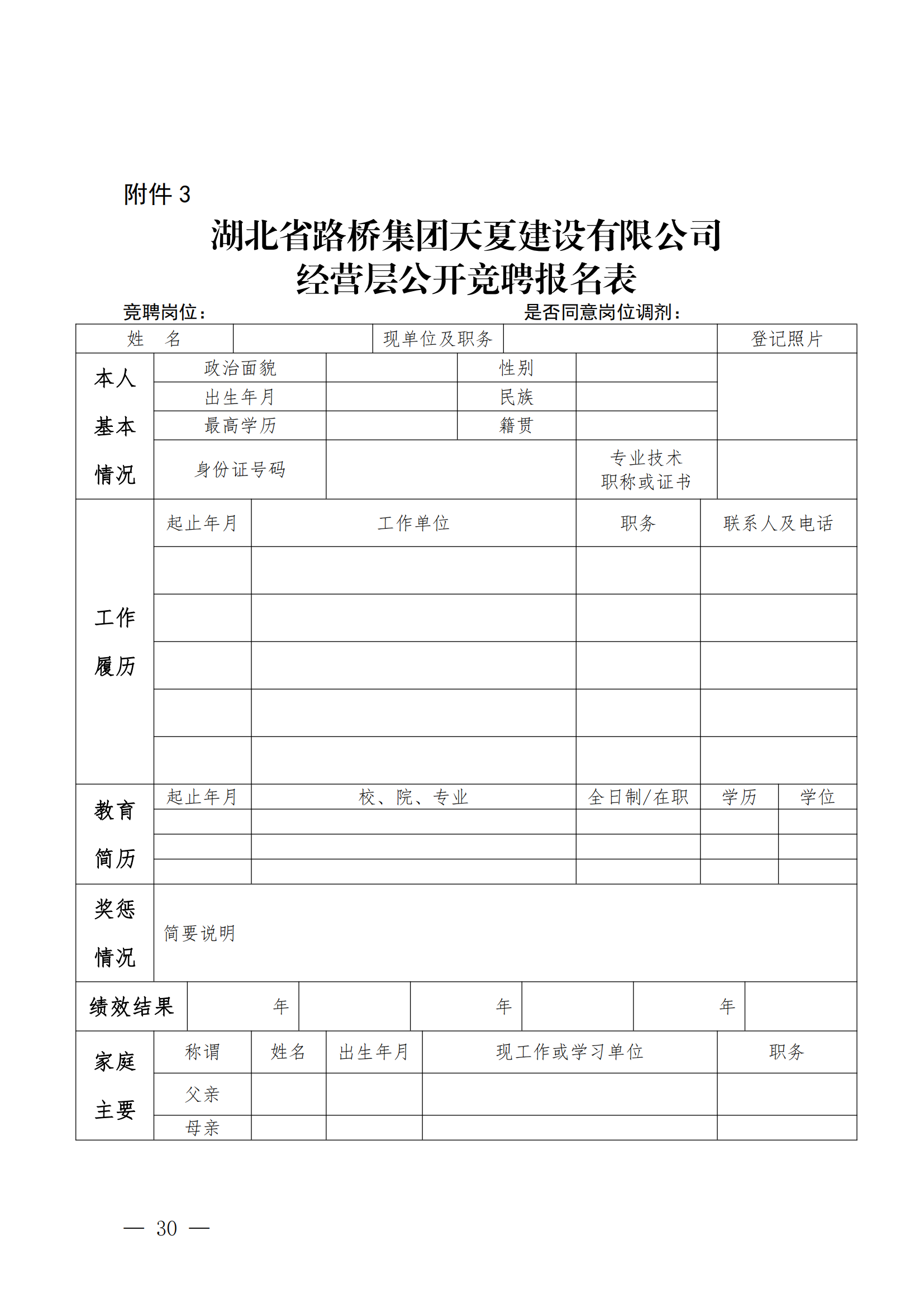 關(guān)于開展湖北省路橋集團(tuán)天夏建設(shè)有限公司經(jīng)營層團(tuán)隊(duì)公開競聘的通知