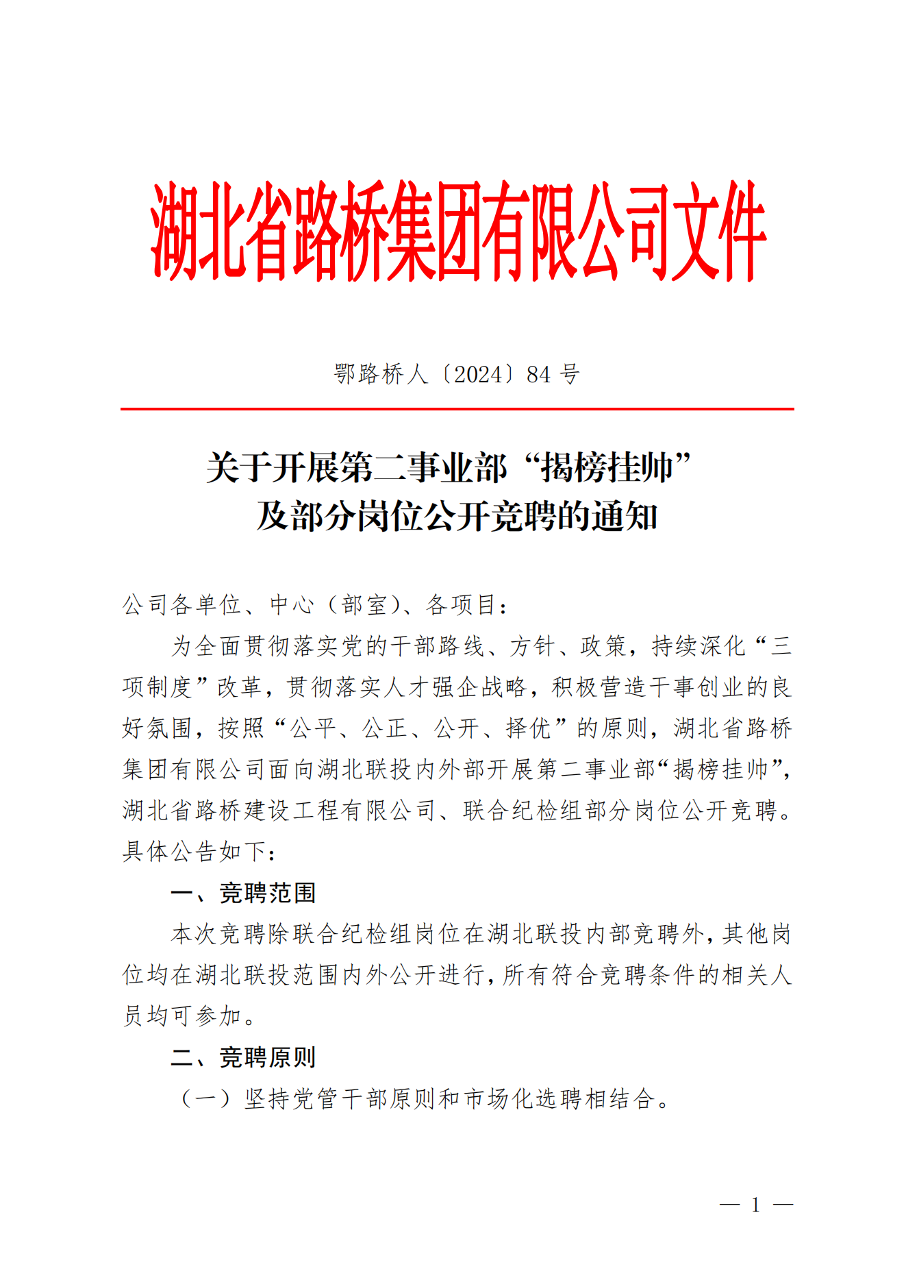 人才強企丨湖北省路橋集團有限公司下屬橋隧公司經(jīng)營層團隊組閣競聘考察對象的公告